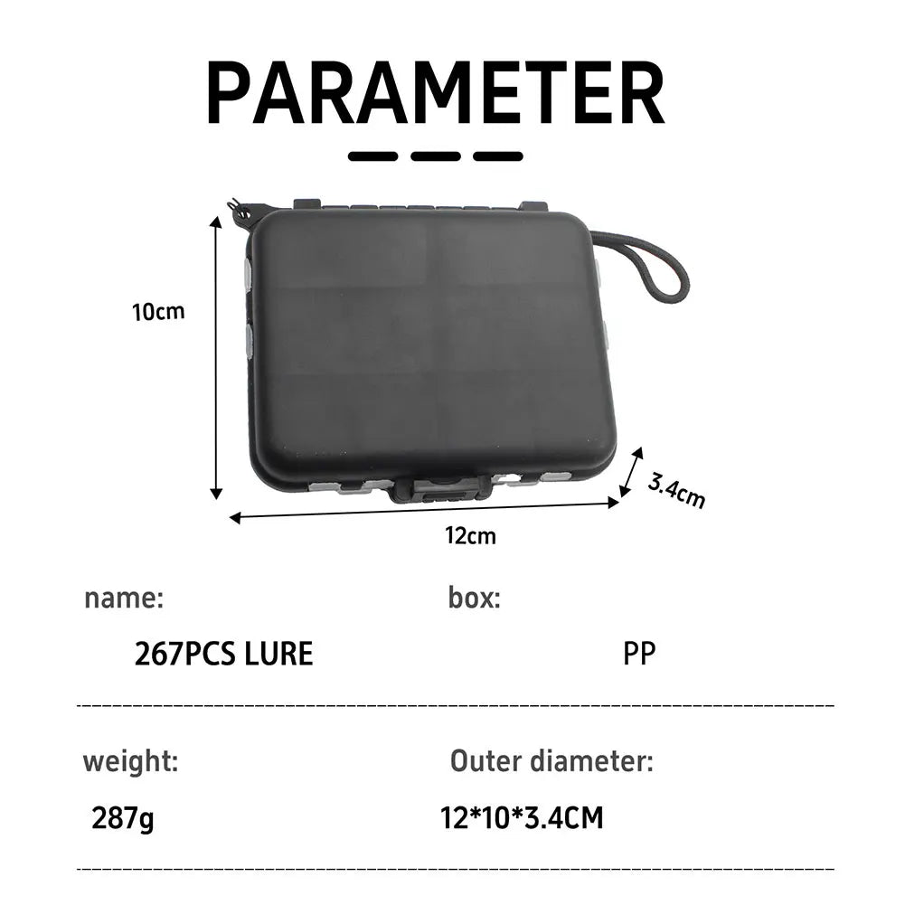 267pcs Fishing Accessories Kit with Box Hooks Bait Sinkers