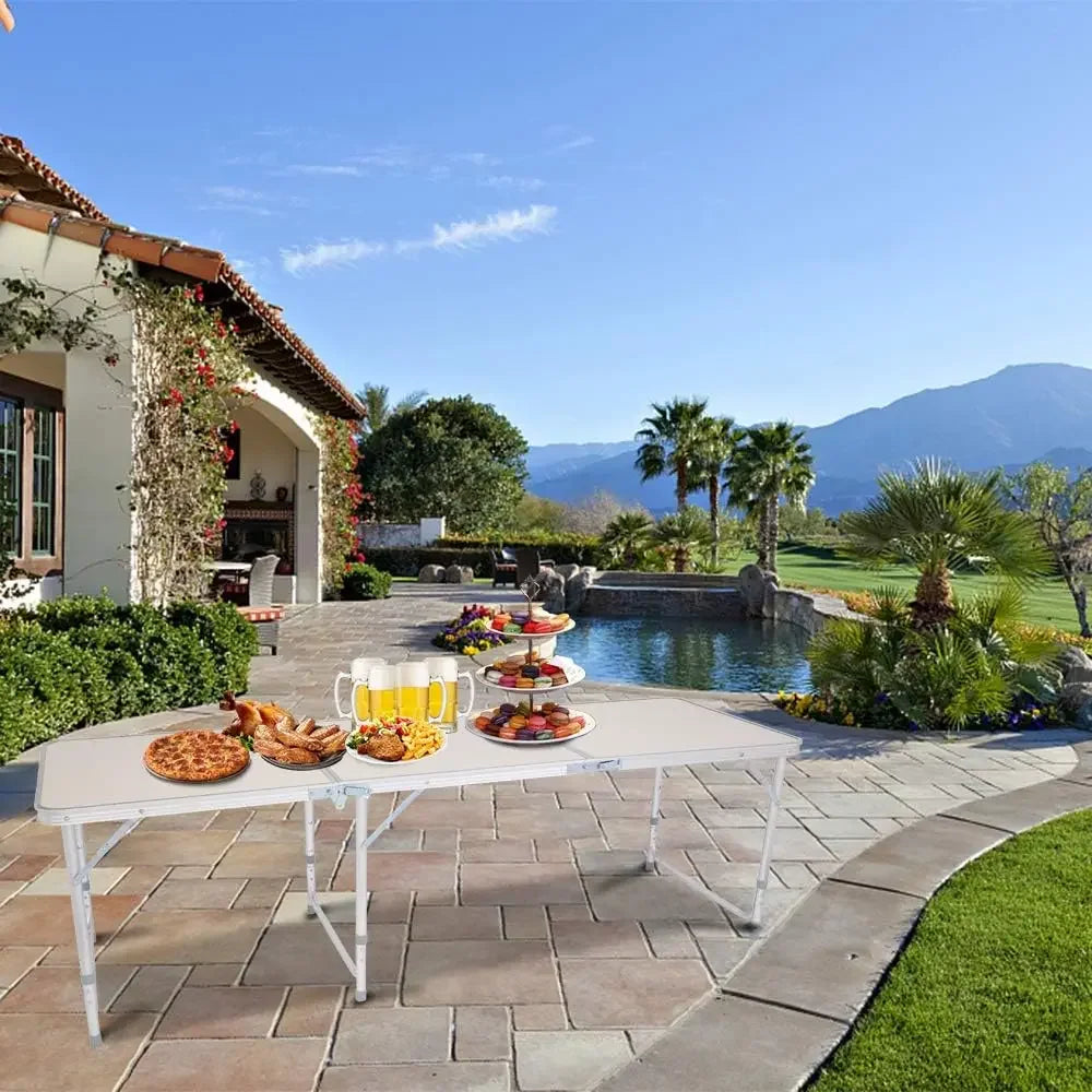 Transform your outdoor setup with a versatile, 6 ft aluminum folding table that stacks up lightweight convenience for camping, picnics, and backyard gatherings.