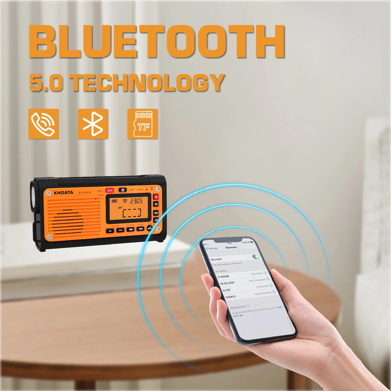 Be ready for any weather or power outage with the XHDATA D 608WB Emergency Crank Weather Radio—your compact, reliable source for NOAA alerts, AM/FM/SW bands, and Bluetooth audio.